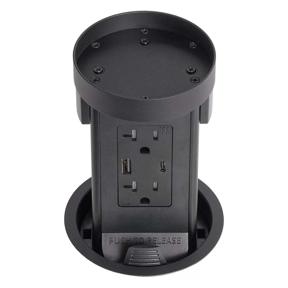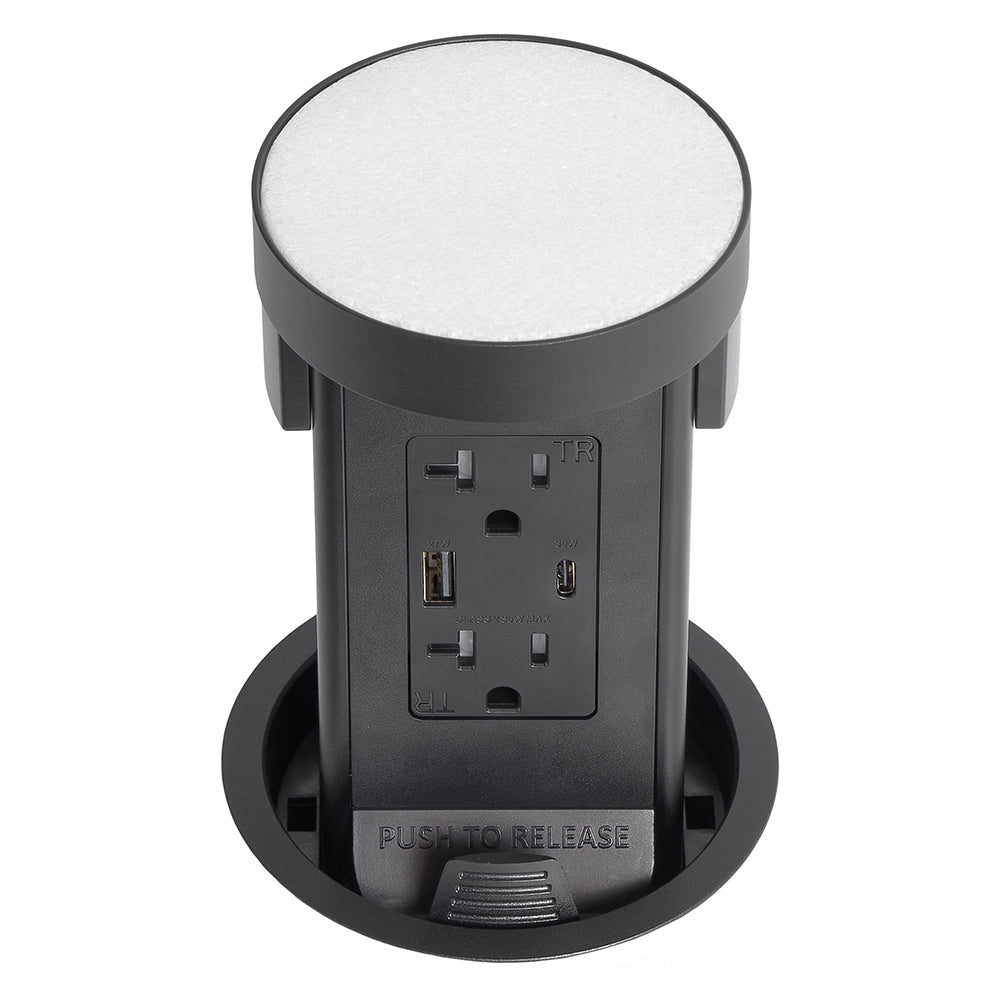 Bring code-compliant power directly to your countertop while maintaining a clean, uncluttered surface. The retractable pop-up outlet remains hidden beneath the counter until needed, then pops up to provide high-capacity appliance power and fast USB charging exactly where you need it.