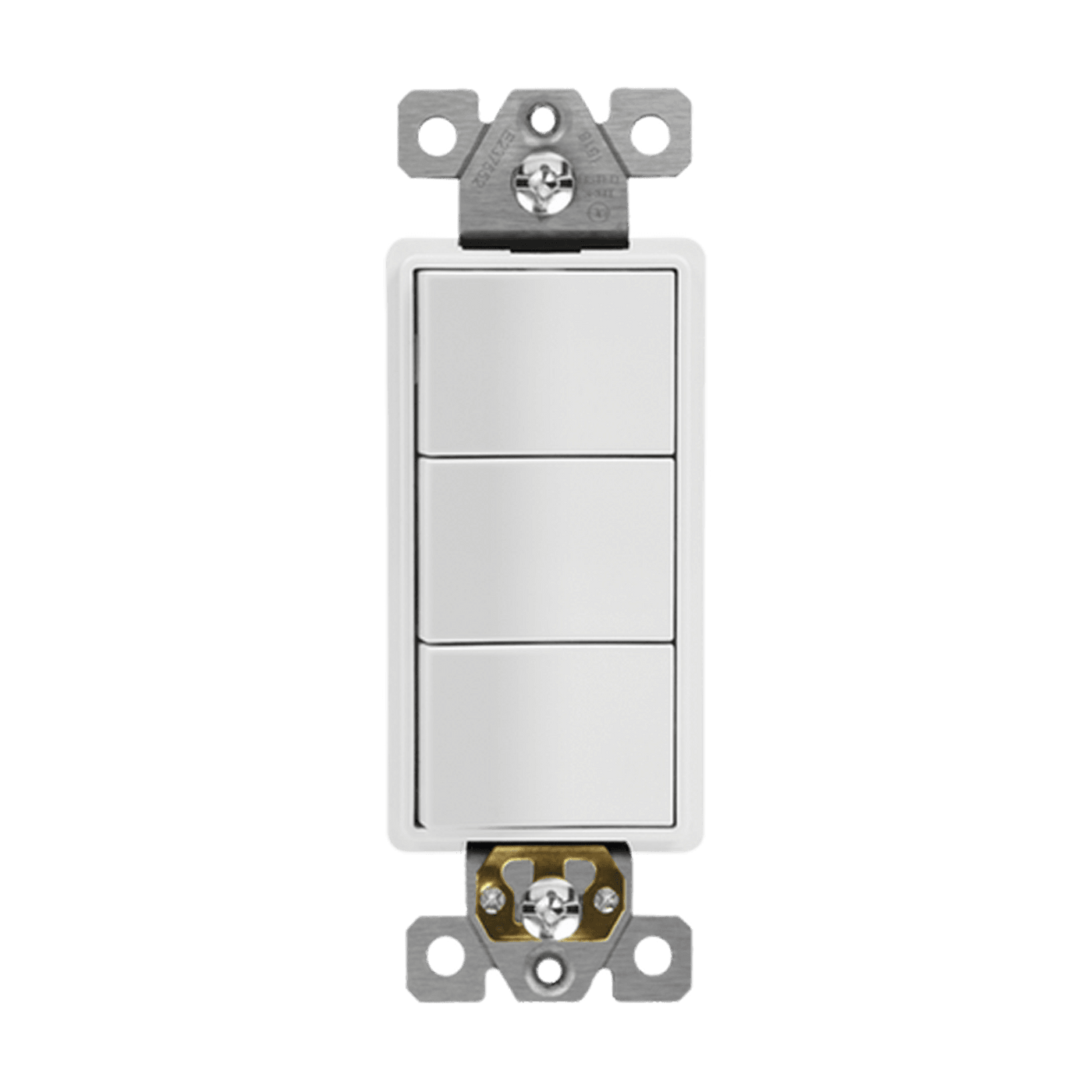 The Enerlites 62755-W is a white triple rocker three-way light switch featuring side wiring for quick installation.