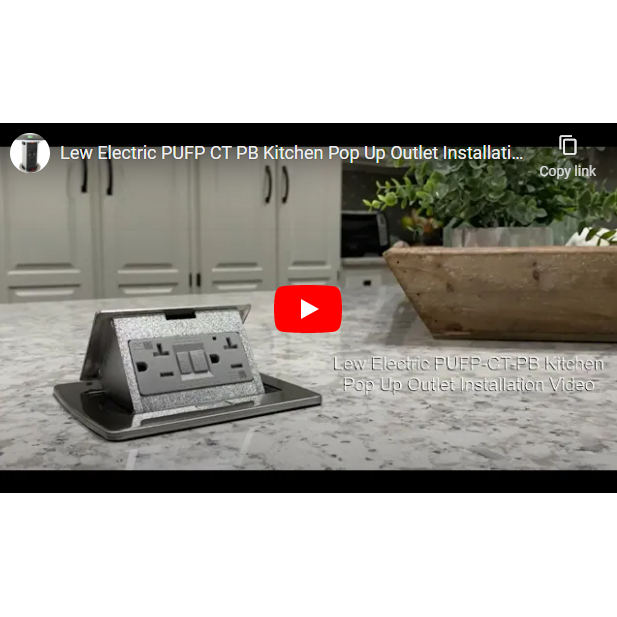 The Lew Electric PUFP-CT-B-GFI-AC-PB-WC is perfect for any countertop location, as well as kitchen islands. It can be used in potentially wet locations requiring recessed power such as pantries, closets, garage work benches, bars, and varied uses at airports, hotels and restaurants. Use the pop up outlet to power small appliances such as coffee makers, blenders, toaster ovens, warming trays, and other items. It can also be used for charging mobile devices such as tablets and phones via the two USB charging ports. Up to three devices can safely be plugged in at once. The pop up can be installed in granite, quartz, marble, wood, laminate, concrete, or any surface up to 1.9" thick, where the required 4 1/8" x 4 1/8" hole can be cut.
