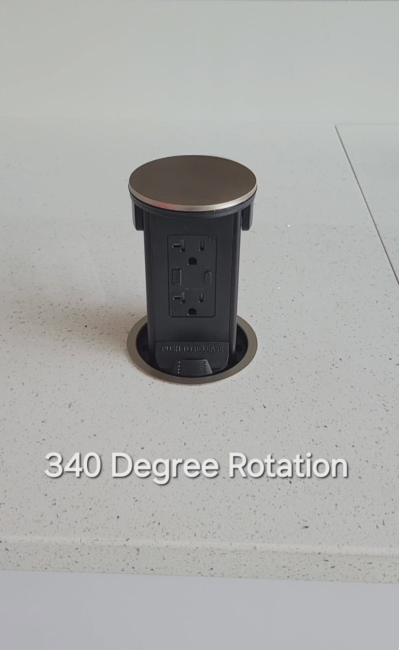With the pop up outlet, get power and charging exactly where it is desired in your counter, while meeting electrical code, and keep dangerous cords from hanging over the sides of counters.
