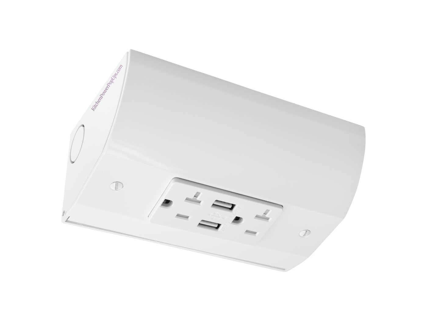 Traditional outlets installed directly into the backsplash often disrupt the look; under-cabinet boxes provide the same convenience and safety, but in a concealed mounting location that preserves your kitchen design. With a sleek, low-profile housing and matching white power outlet, this model blends into cabinet undersides for a discreet, minimalist appearance, ideal for modern white cabinetry, or clean design aesthetics.