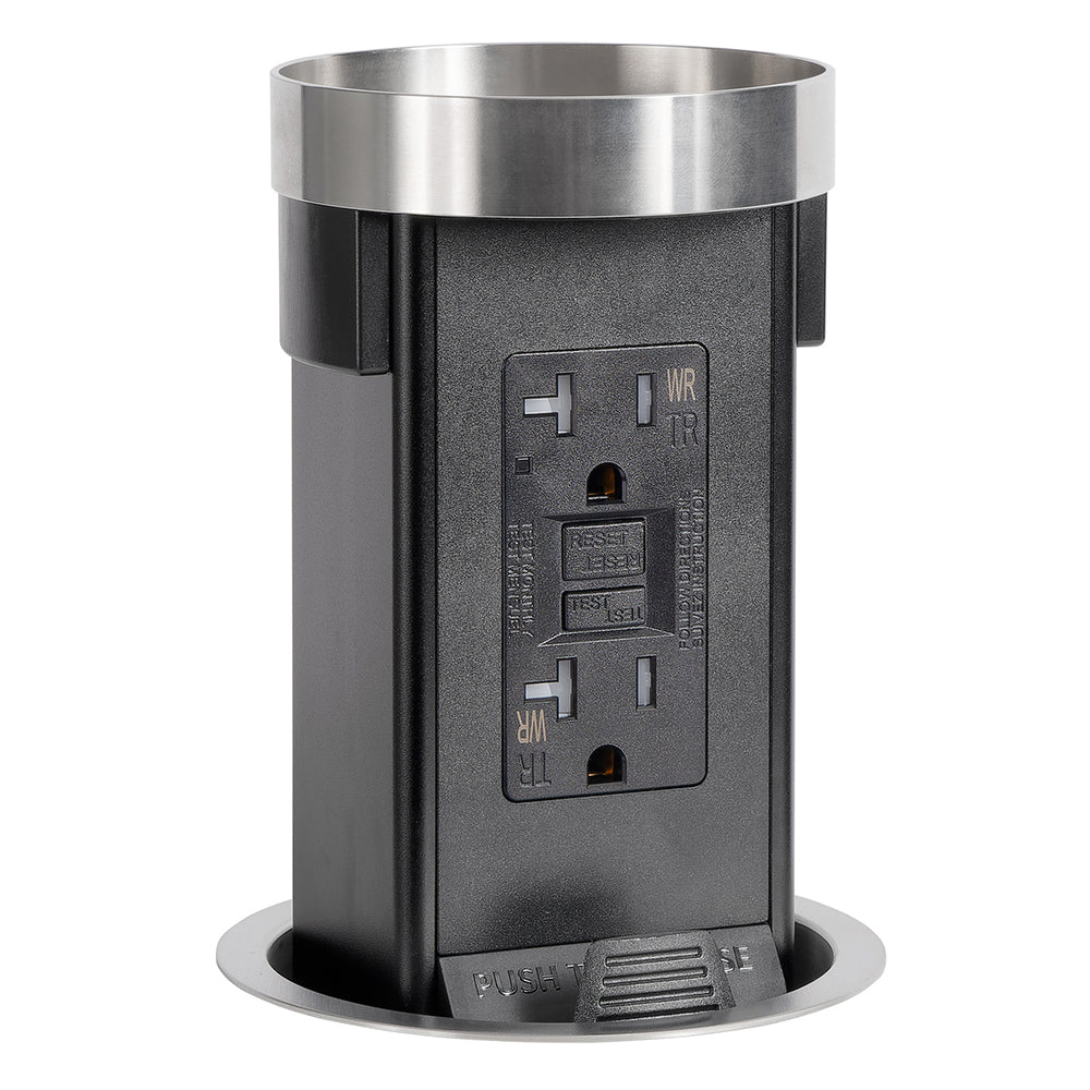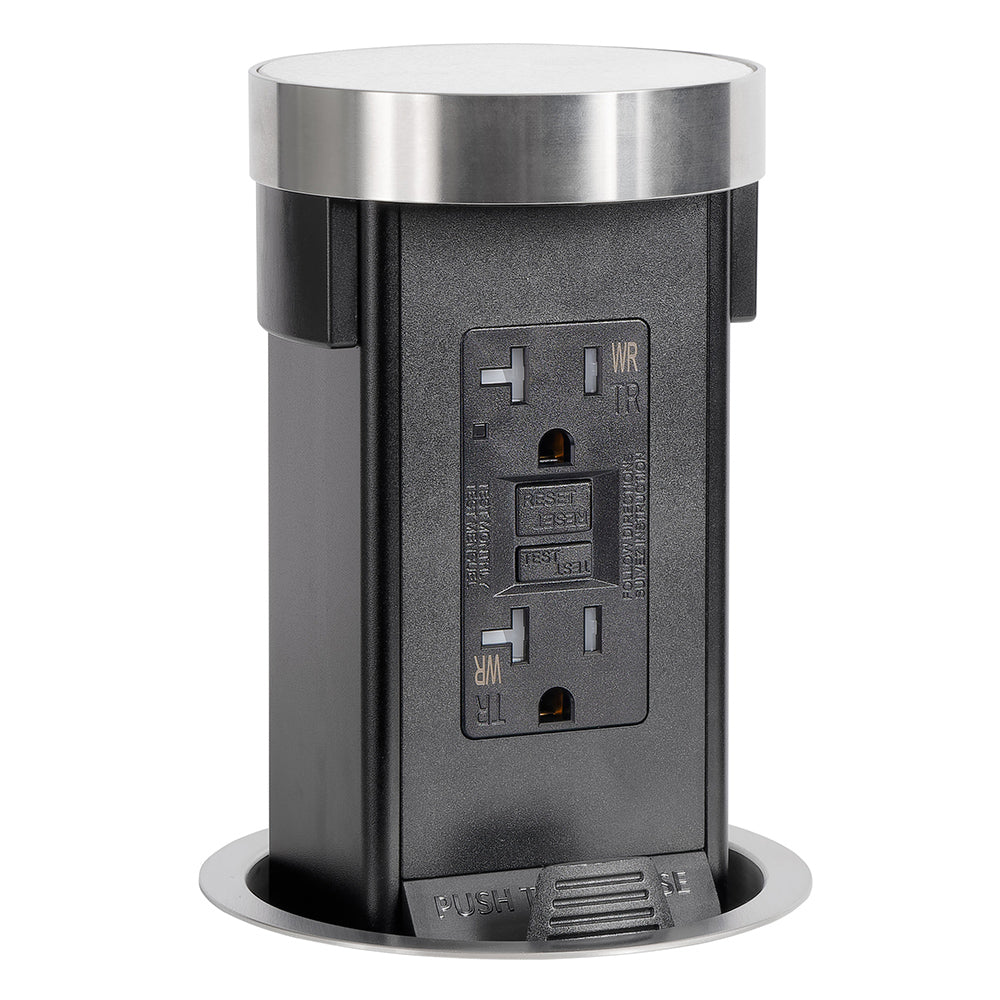 Bring code-compliant power directly to your countertop while maintaining a clean, uncluttered surface. The retractable pop-up outlet remains hidden beneath the counter until needed, then pops up to provide high-capacity appliance GFCI-protected power.