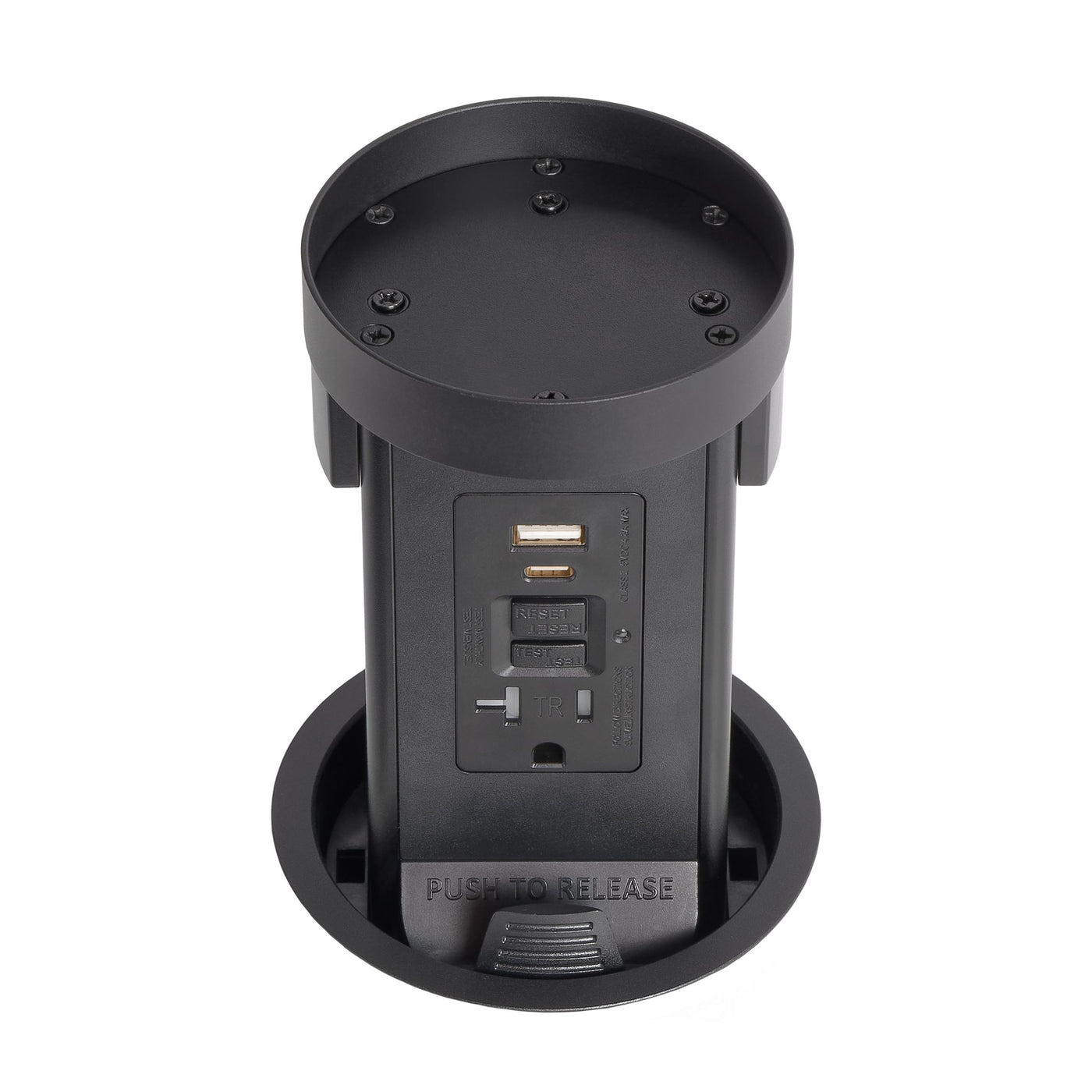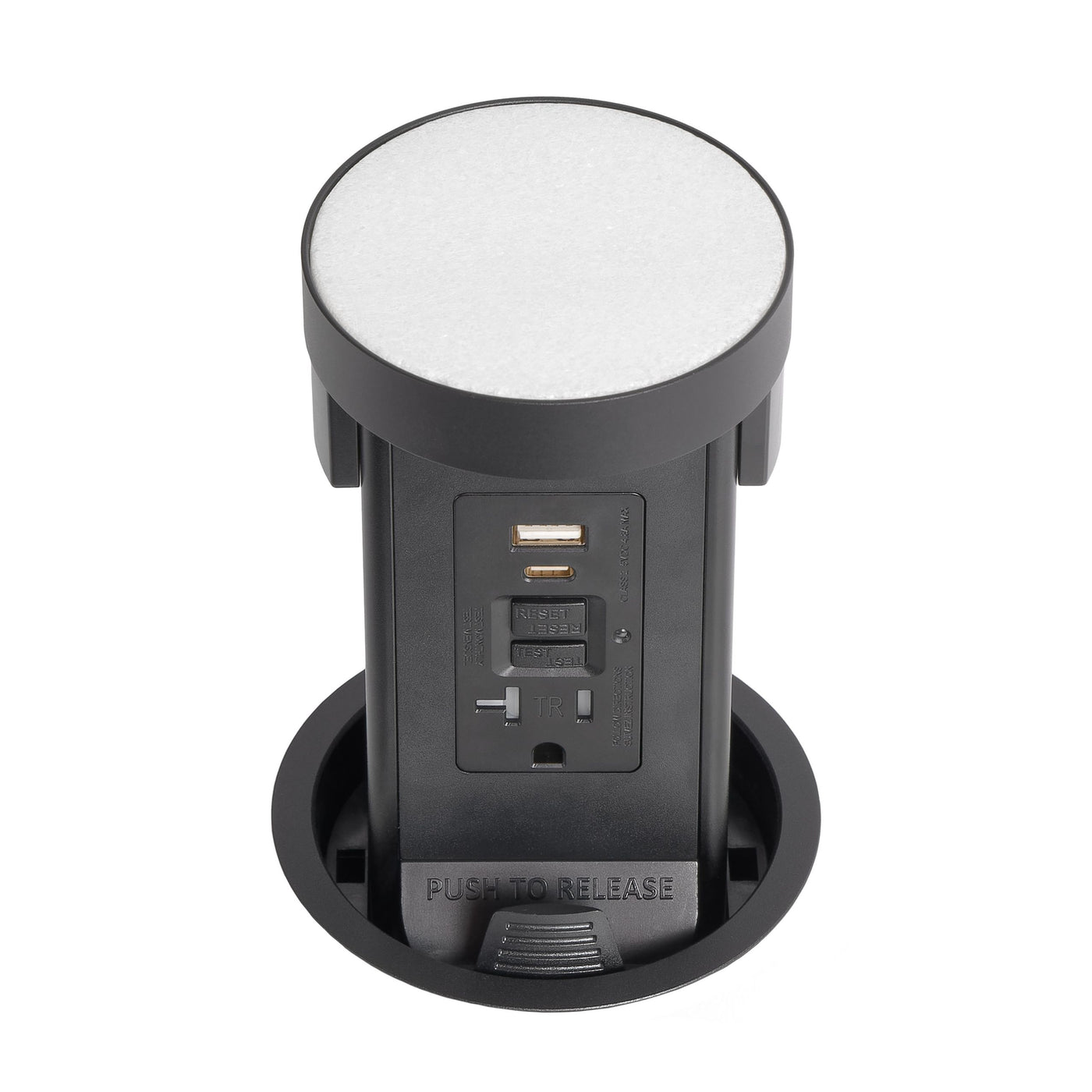 Bring code-compliant power directly to your countertop while maintaining a clean, uncluttered surface. The retractable pop-up outlet remains hidden beneath the counter until needed, then pops up to provide high-capacity appliance GFCI-protected power, and fast USB charging exactly where you need it.