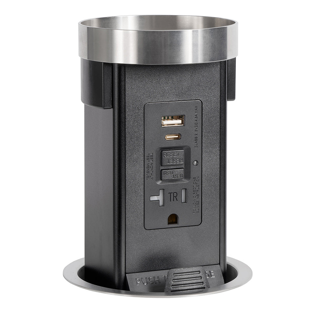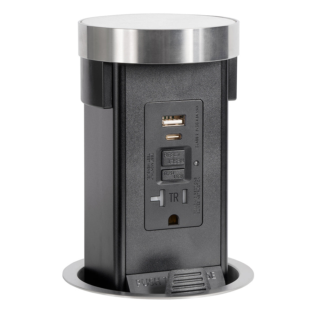 Bring code-compliant power directly to your countertop while maintaining a clean, uncluttered surface. The retractable pop-up outlet remains hidden beneath the counter until needed, then pops up to provide high-capacity appliance GFCI-protected power, and fast USB charging exactly where you need it.